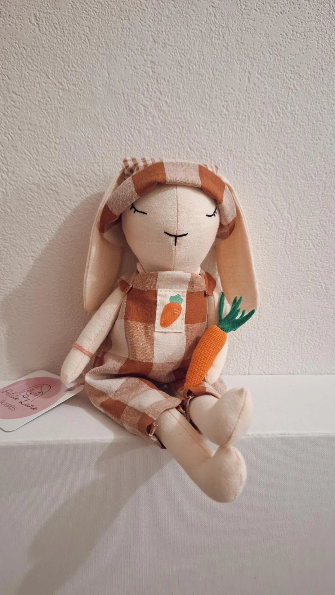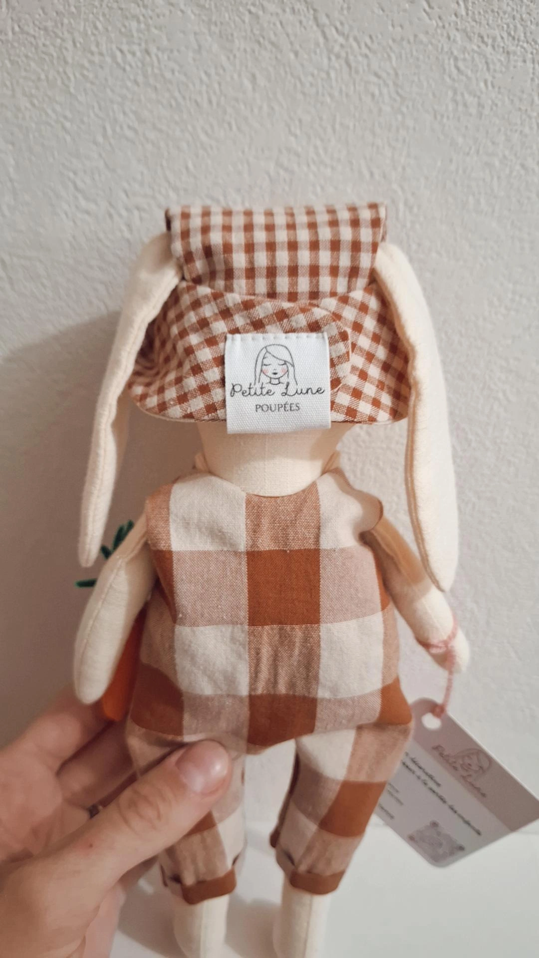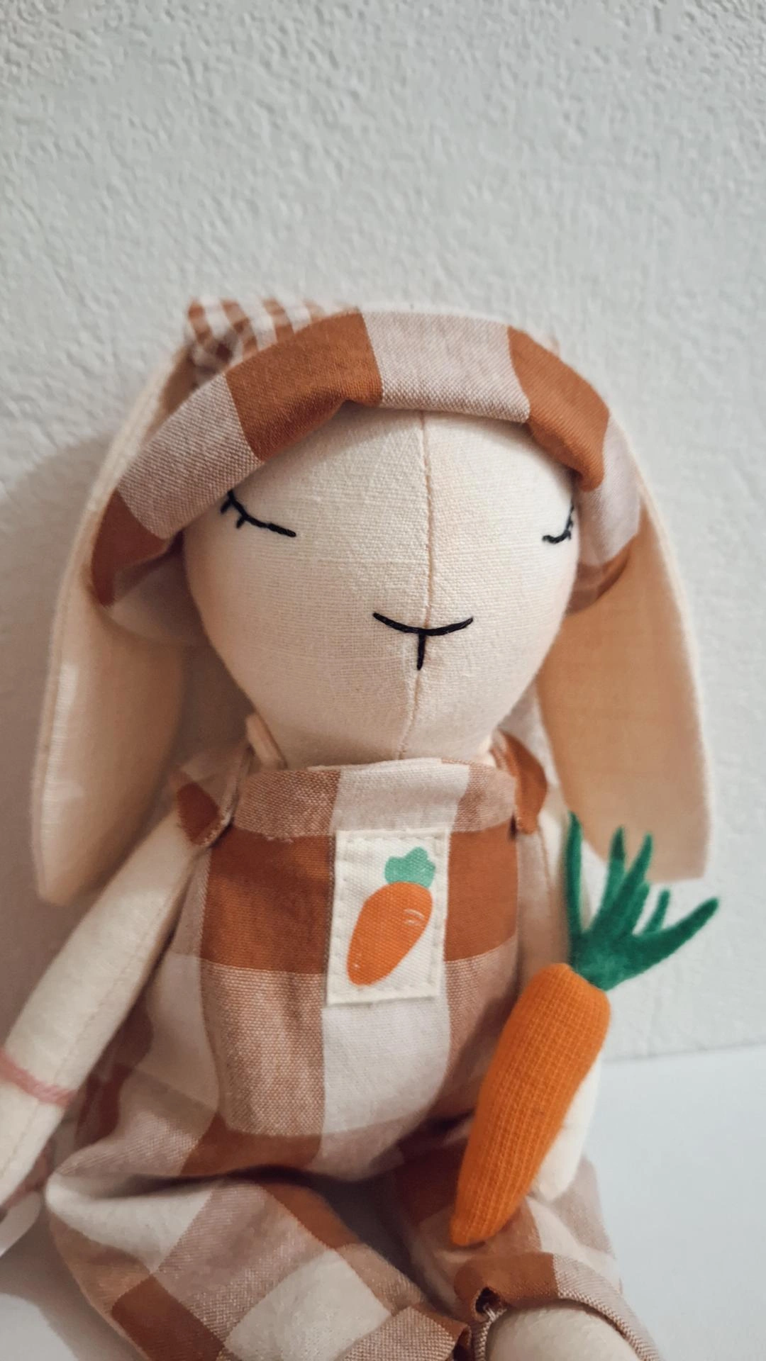 Poupée Ernest le petit lapin jardinier.